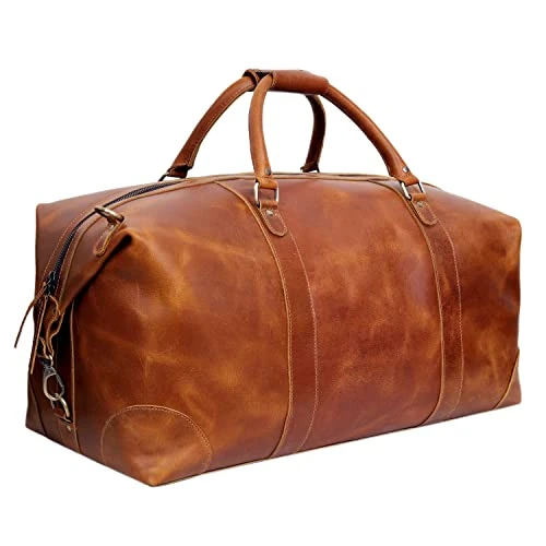 - ✔Size and Design :Size 24” 9″ 11”, Large capacity design makes our sophisticated Duffel Bag satisfy the demand of the daily life and work. This leather travel bag is your go to carry machine Use it for a weekend vacation, gym or for just running around town.