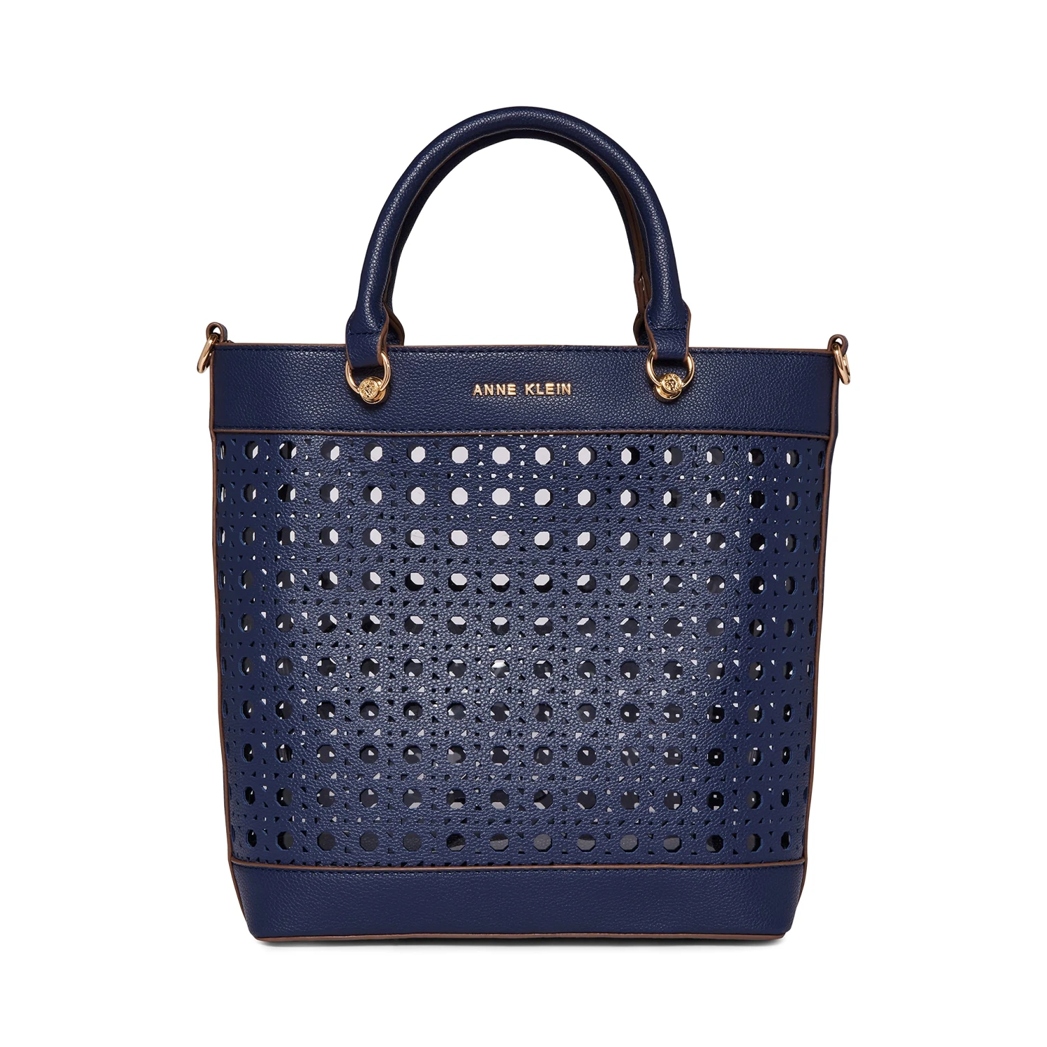 Details: This mini tote displays a beautiful perforated design that will make it your outfit goto. This mini tote comes with a crossbody strap and a removeable pouch for wearable versatility.