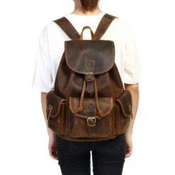 HLC 20″ Genuine Leather Retro Rucksack Backpack Brown Leather Bag Travel Backpack For Men Women