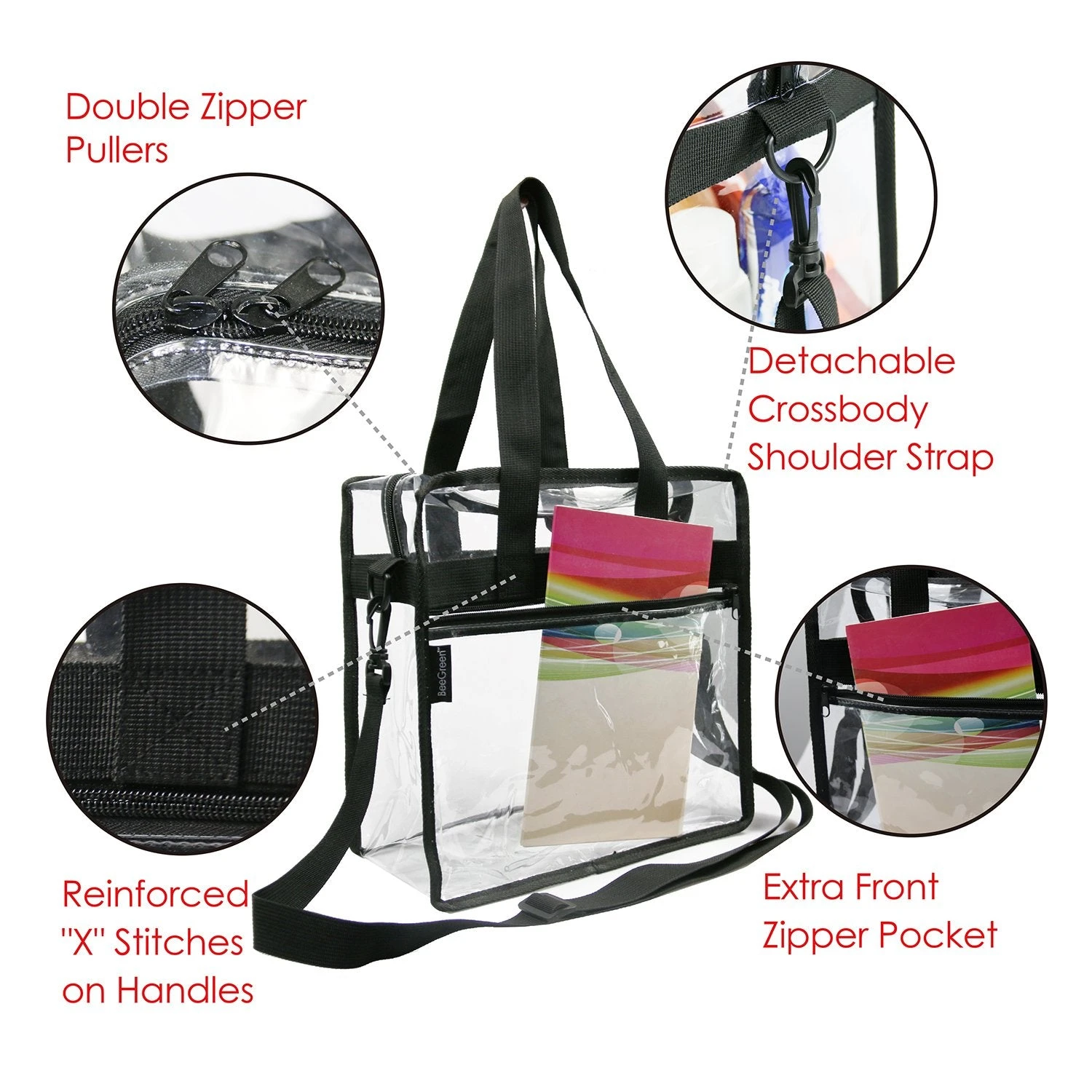 - STADIUM APPROVED- BeeGreen Clear bags meets NCAA,NFL and PGA Tournament guidelines for 12x12x6 clear Purse. Approved to be used where regulations require clear bags such as NFL football games, work,school security regulations, casinos, events, parks, and college stadiums.