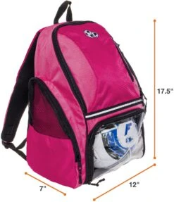 LISH Soccer Backpack – Large School Sports Gym Bag W/ Ball Compartment (Pink)