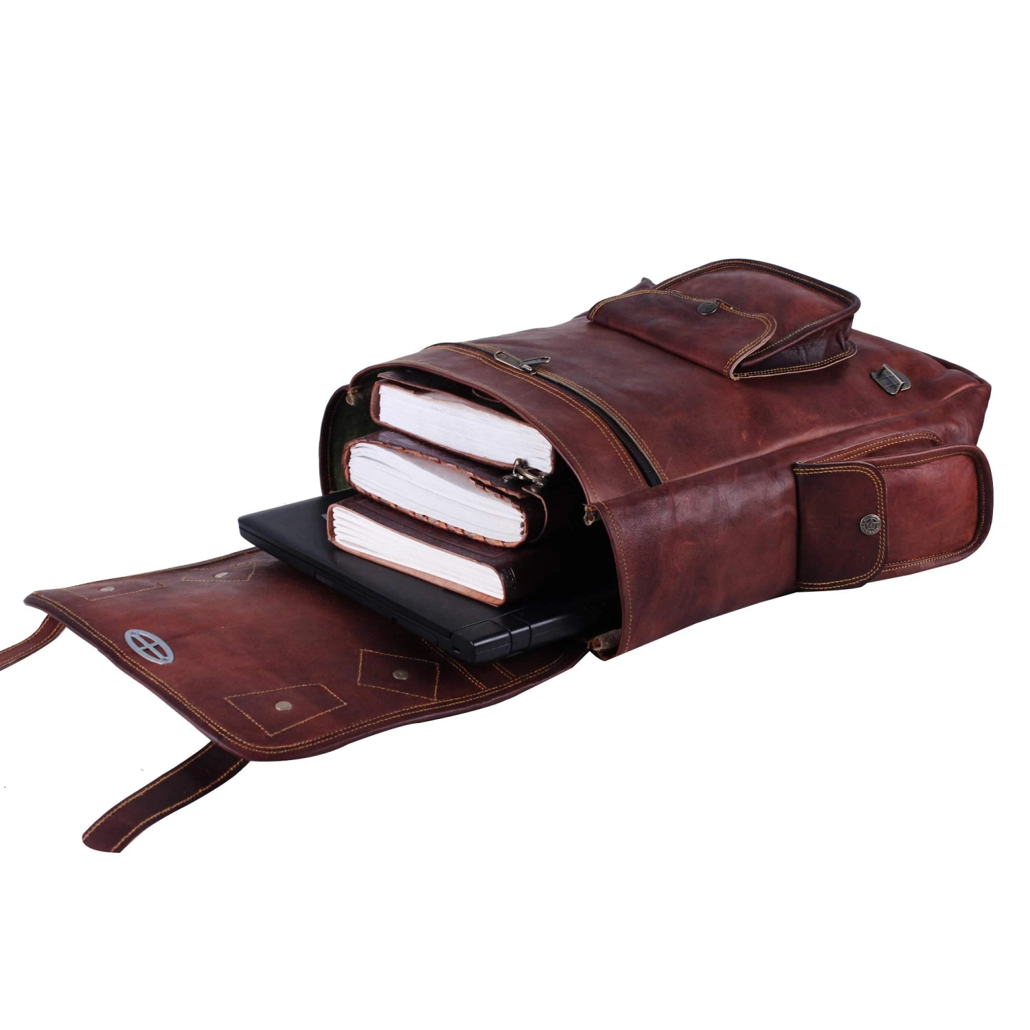 - STURDY RETRO BACKPACK FOR LAPTOPS: Keep your laptop, devices and documents safe and dry. This Brown Leather backpack men bag have Lots of places to store phones and smaller items, with large zipper area for safekeeping of important documents. Making it a ideal mens backpack for work or Leather bookbag for your College or your leather weekender bag for women and Women.