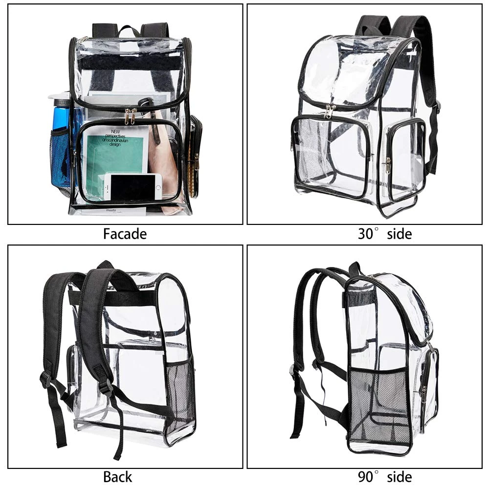 - [ Heavy Duty Clear Backpack ] Made of ultra-thick transparent PVC waterproof material, upgraded double zipper closing device and reinforced bottom, collection of stylish transparent design in a transparent backpack,is the perfect choice for schools, security travel and sporting events!