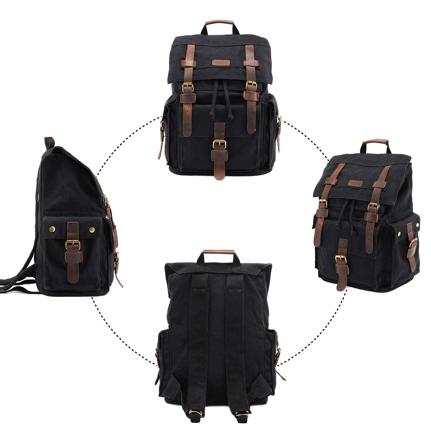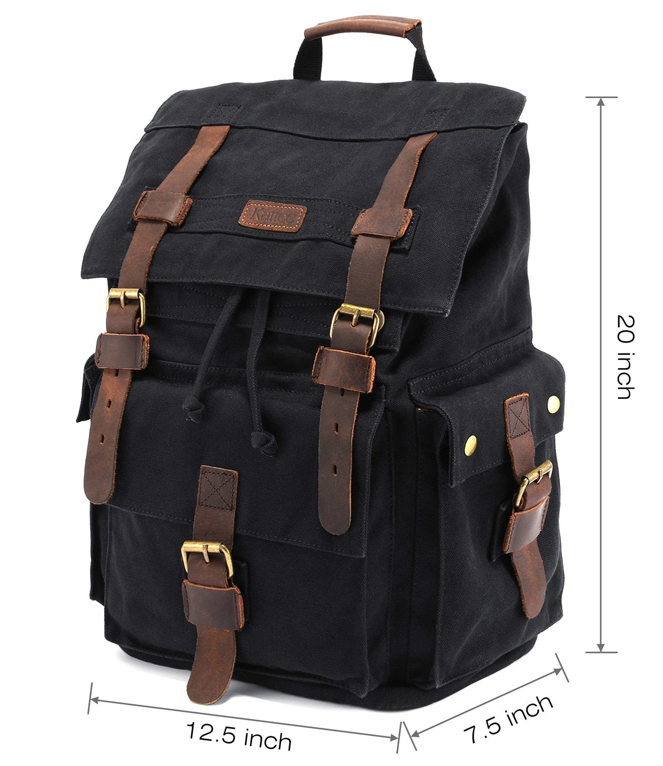 - Canvas leather backpack/rucksack for hiking, camping and traveling
