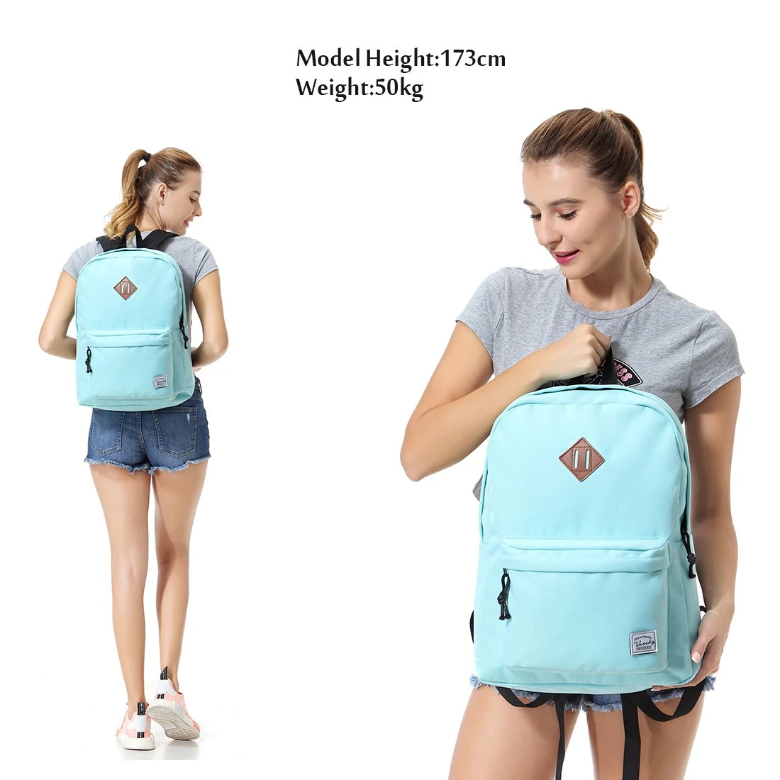 - 1.The lightweight backpack is made of durable water resistant Polyester.It weights 0.36kg only.Featuring its classic silhouette,the convenient and comfortable pack is great for everyday use.