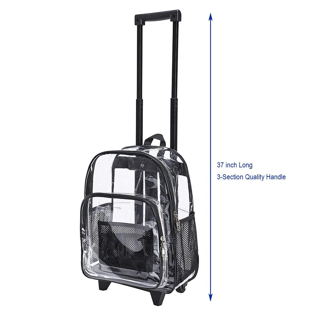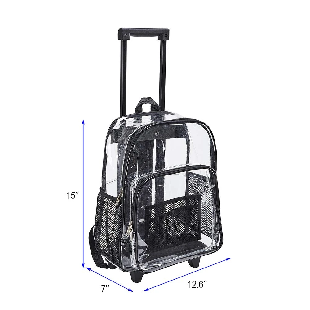 Details: Rolling Clear Backpack can be used for short trips to work, to the beach or to the zoo, or for extracurricular activities.Backpack’s roomy interior