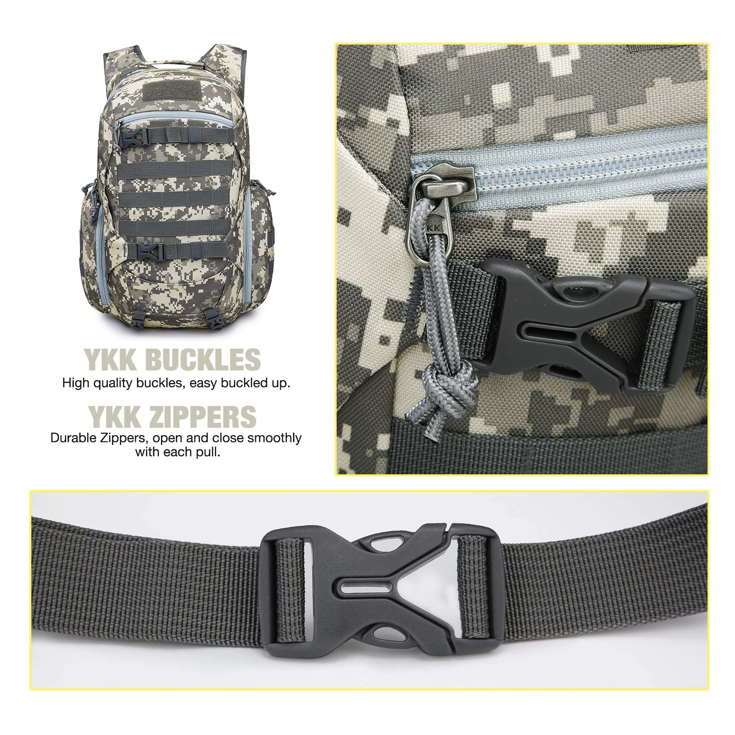 - DURABLE & MULTIFUNCTIONAL- This molle backpack with chest straps to cope with the weight so that it’s well used as a 3 day assault pack,bug out bag,survival backpack,army backpack,trekking backpack or day pack. Suits for Hiking,Camping,Trekking,Traveling,School or daily use.