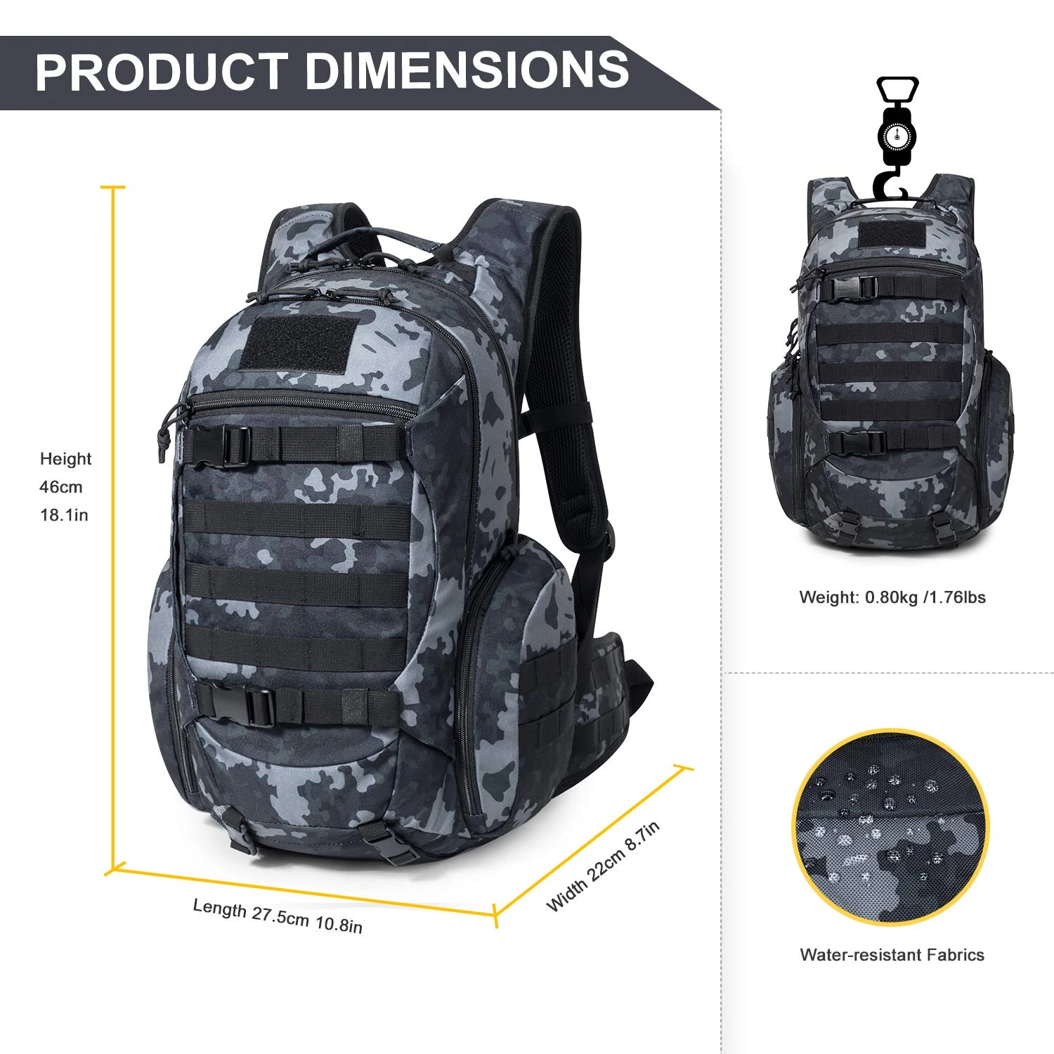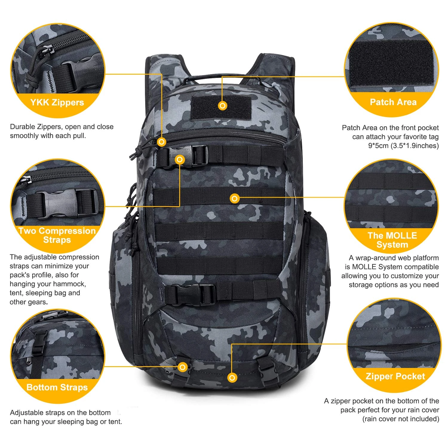 This tactical backpack can be well used as A 3-day assault pack,tactical bakpacks,molle backpack,bug out bags backpack,combat backpack,range bag,survival backpack,rucksack military army backpack or trekking backpack.