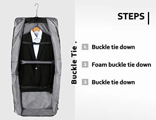 - WRINKLE FREE, KEEP CLOTHES IN GREAT SHAPE: Suit carry on garment bags with 3 loop holders easily hanging 3 full suits, 3 interior ties down straps and middle foam padded strap keep your suit tidy and free of wrinkles. Carrying the business travel garment bags, reduce preparation time, have more fun with your business trip, week trip, wedding trip.