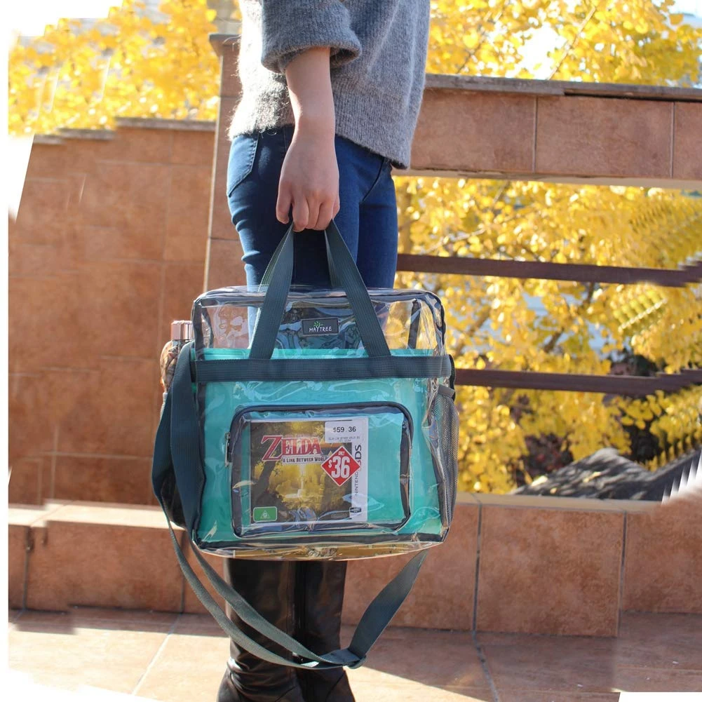 - 【Security and Conveniently】- If you’re a sports fan going to a game, the last thing you want to do is waste tons of time by having security dig through your normal bags; Transparent tote bag lets you breeze through security! Clear tote bags Suitable for travel, beach, students clear lunch bags, women clear diaper bags, office workers, sports events and concert.