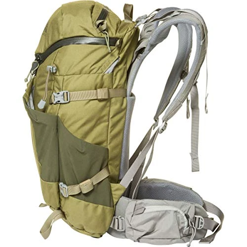 Details: Mystery Ranch® accompanies you on your next journey with the Coulee 25 daypack. Durable hiking pack with a framed design. Top-loading main compartment with 3-zip closure to allow for easy access to contents. Mesh lid pocket keeps smaller items close at hand. Internal, elastic sleeve for extra layers or hydration bladders. Compression straps at sides for added load management. External lash points for added organization. Outside pocket for storing extra layers. Back frame• HDPE frame sheet for added structure.• Composite cross stay keeps vertical rods aligned and allows them to pivot and flex for a stable carry.• Adjustable, padded waist belt conforms to the hips for effective weight transfer. Adjustable shoulder straps with mesh lining. Webbing sternum strap. 420D nylon build. Imported. Measurements: Bottom Width: 10 1⁄2 in Depth: 6 in Height: 21 in Strap Length: 39 in Strap Drop: 19 1⁄2 in Handle Length: 6 1⁄2 in Handle Drop: 2 in Weight: 2 lbs 11.4 oz Product measurements were taken using size LG/XL. Please note that measurements may vary by size.