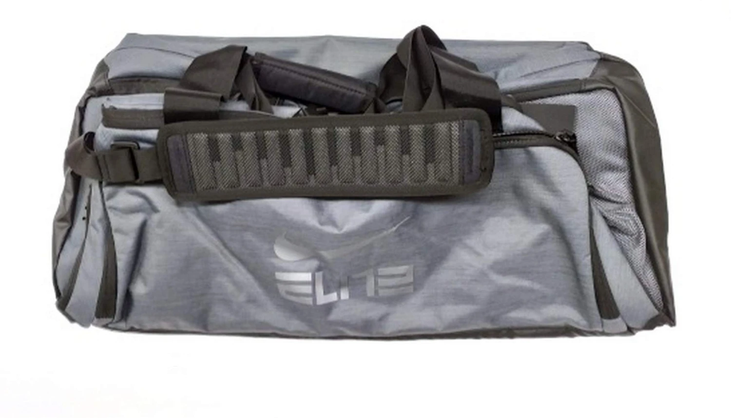 Details: The Nike Hoops Elite Basketball Duffel Bag holds all your gear without adding extra bulk. It features multiple compartments for better organization, including a designated pocket built to help keep a beverage cold. Dimensions: 26″ H X 12″ W X 12″ D