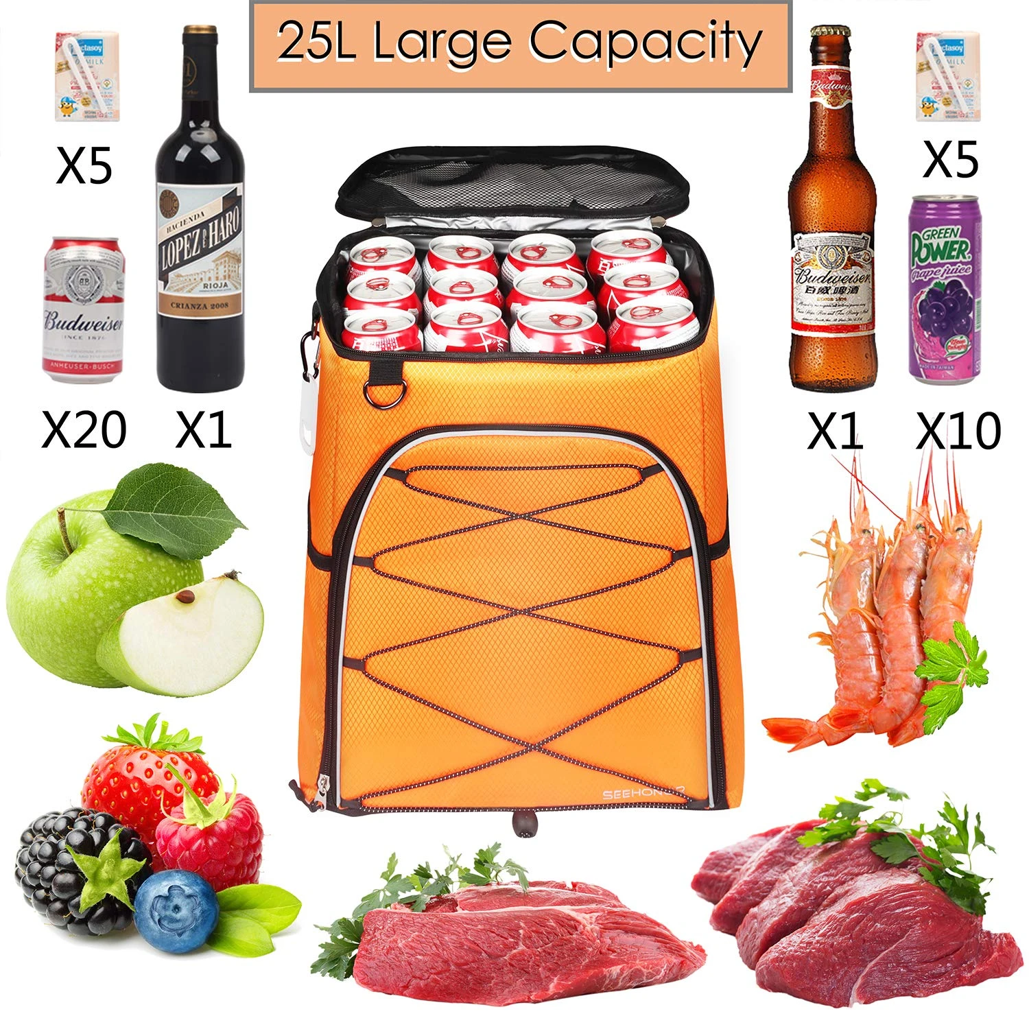 Details: SEEHONOR Insulated Cooler Backpack Leakproof Soft Cooler Bag Lightweight Backpack Cooler for Lunch Picnic Hiking Camping Park Beach, 25 Cans