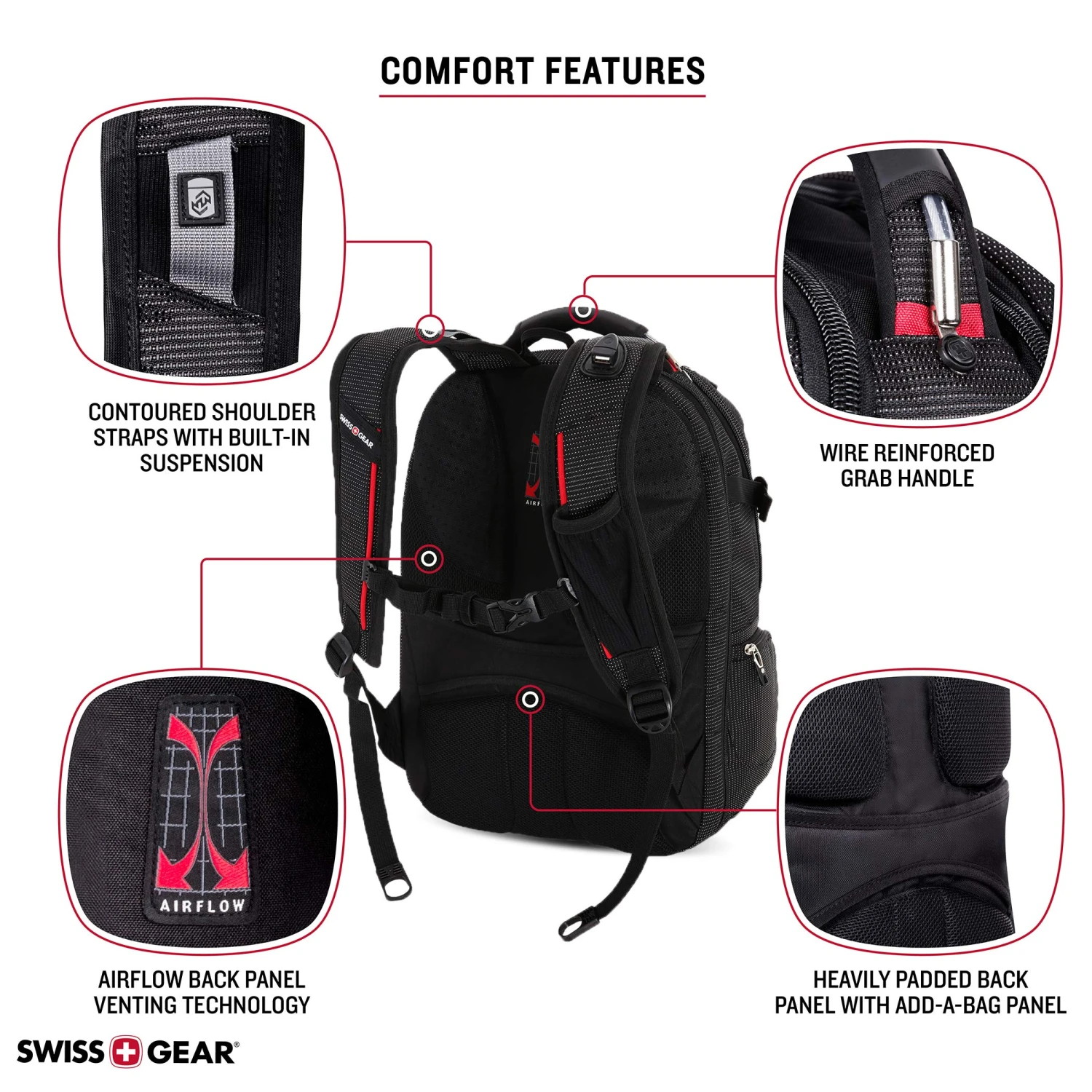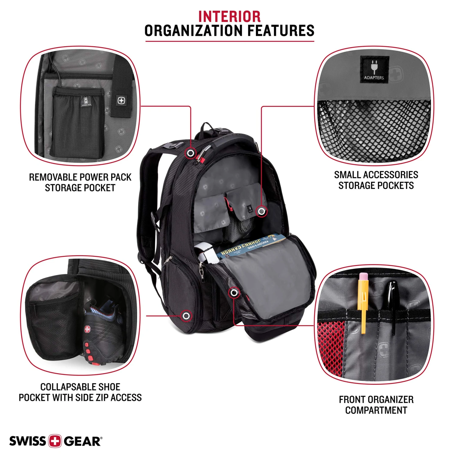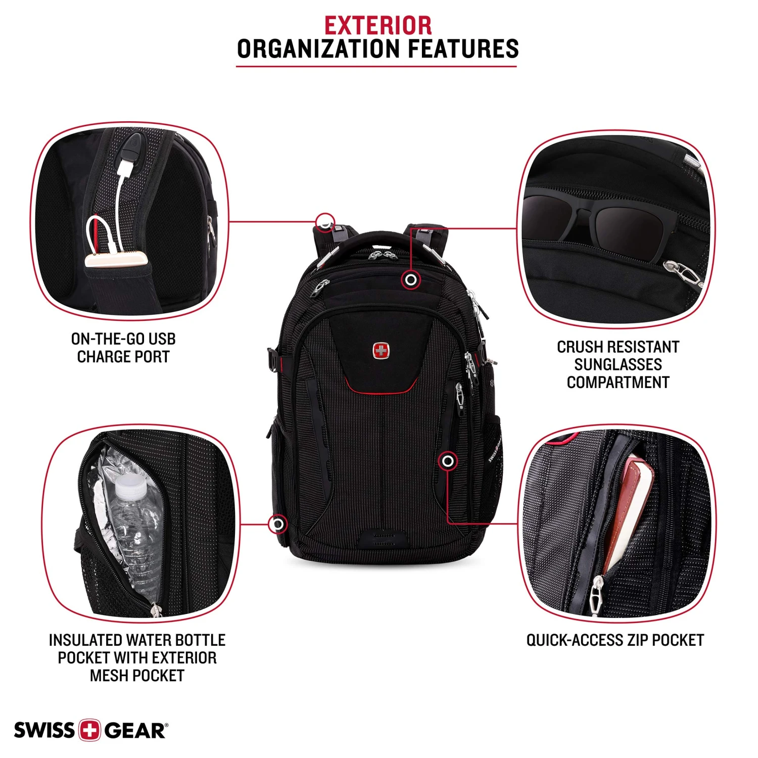 Details: When you’re ready to move up to a different league of organization in a backpack, this is the one you want to strap on for size, the Swissgear 5358 USB ScanSmart Backpack. Encased in a durable, abrasion-resistant polyester fabric, this pack has a surprise around every corner. This bag comes with a TSA friendly lay-flat back panel with room for a tablet and a laptop, a front quick access pocket, a fleece lined crush-resistant sunglasses pocket and an organizational pocket. The center compartment is really where this bag shines as it has an internal zippered panel that when unzipped turns into a side-access shoe bag. Fully padded shoulder straps and back panel, a phone charging hub, and insulated side zip pocket round out this great pack.