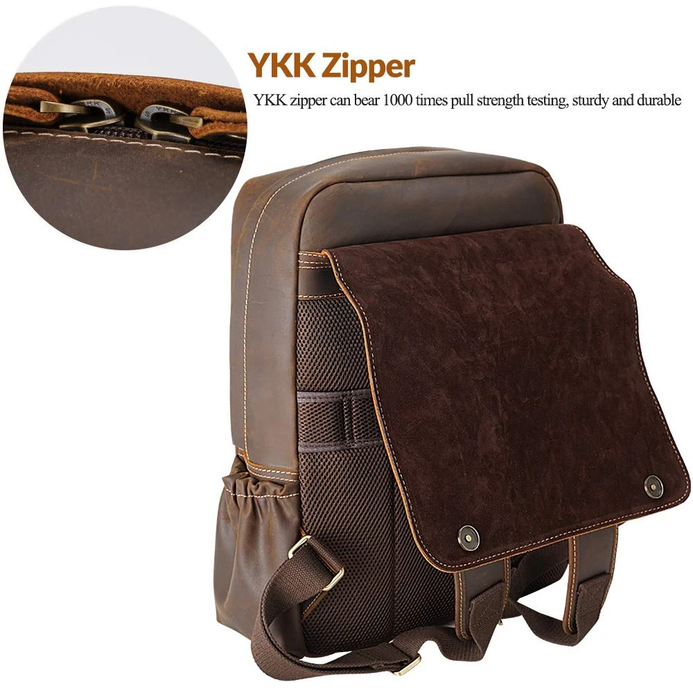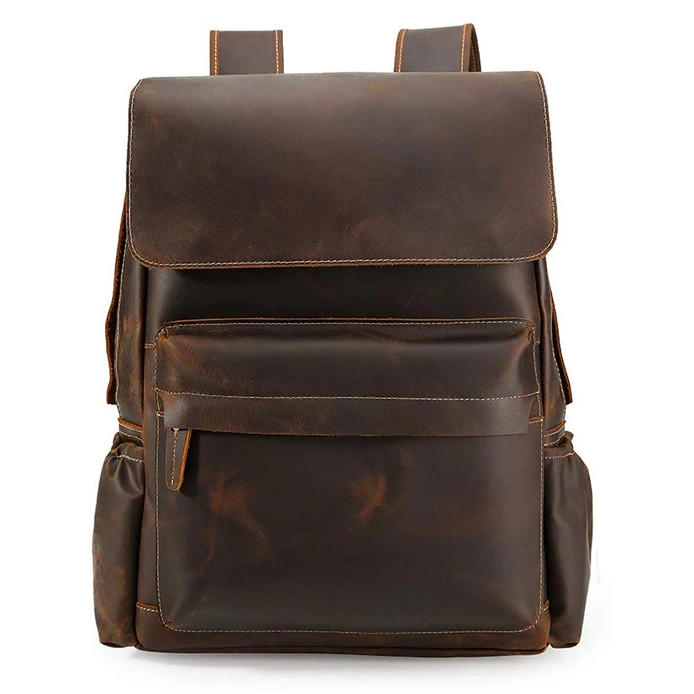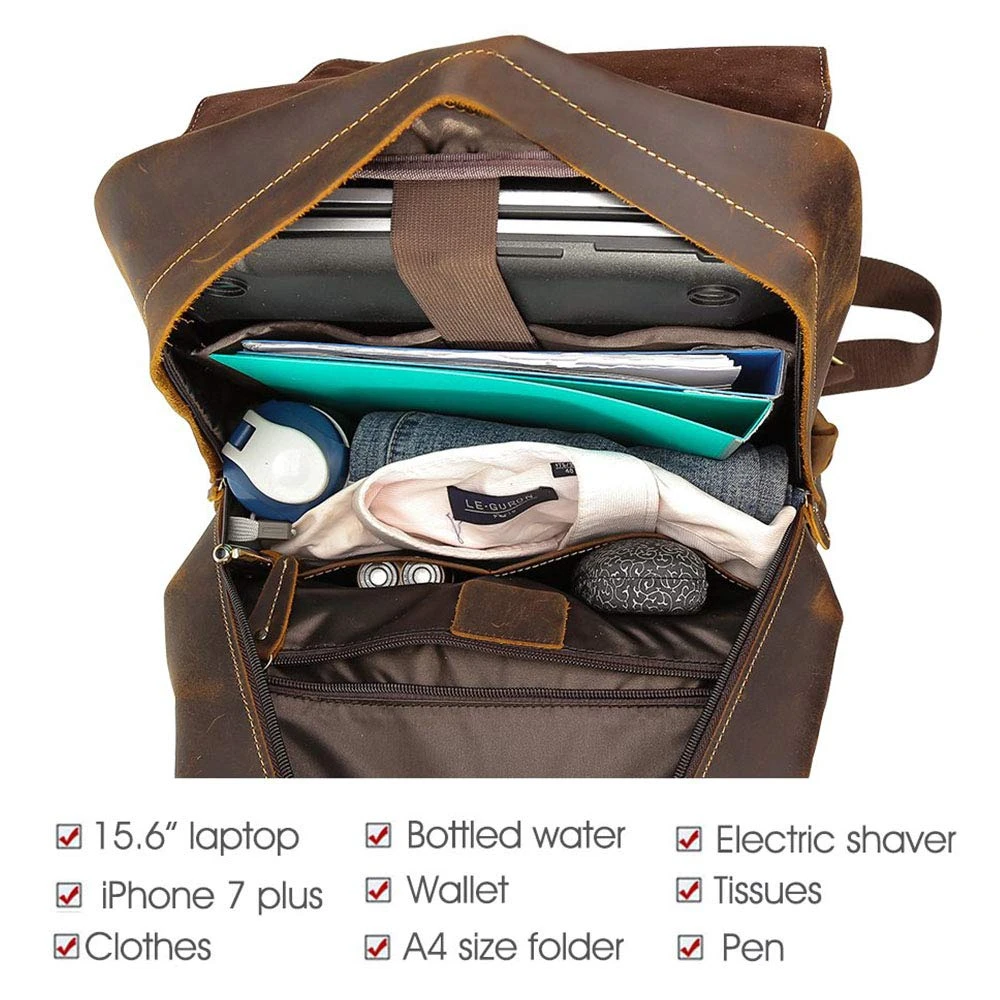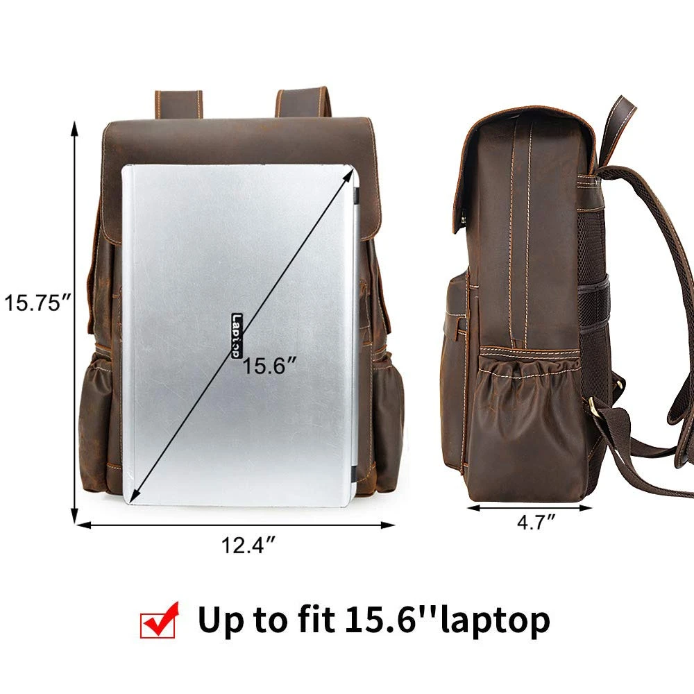 - ✔ Large Capacity Retro Genuine Leather Backpack: A laptop padded sleeve for 15.6 inch laptop. Main pocket is very big to store your Files,Books,Magazines,Ipad,Phone,Macbook,Clothes etc; Side Pocket can store your water bottle and umbrella