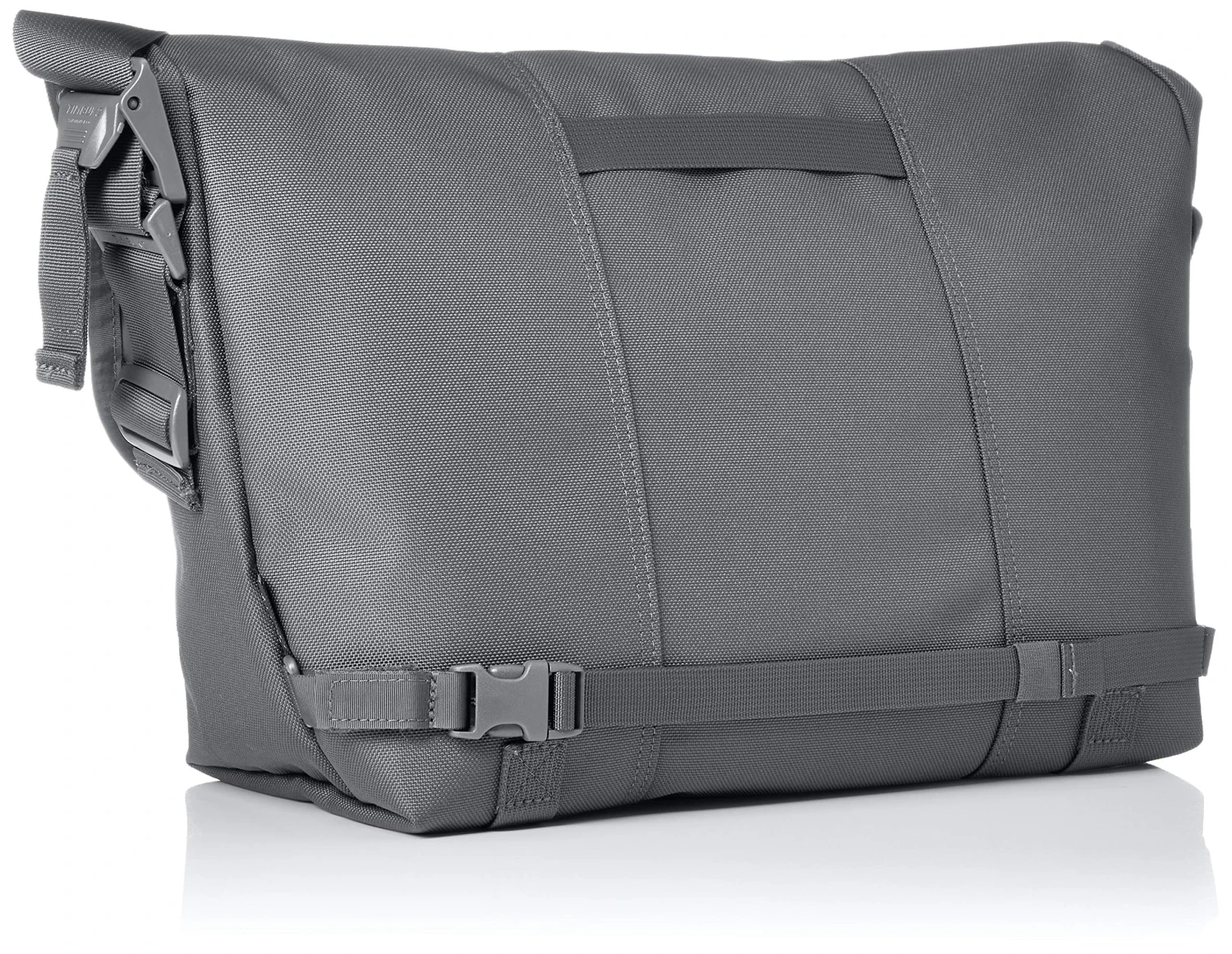 Details: Our classic messenger bag. Designed in San Francisco over 25 years ago. The shoulder strap features a curved air mesh strap pad for increased comfort, fine webbing, and Timbuk2 double-loop Cam buckle that adjusts quickly and eliminates dangling straps. A low profile grab handle makes the messenger easy to grab and go and SR buckles are partially Concealed behind the messenger flap for a refined but secure closure. INSIDE, the waterproof TPU liner and corner wings keep water out, and the internal water bottle pocket keeps water in. Distributed internal pockets and organization balances the weight of your carry. It’s a classic through some modern Evolution, and its ready to be worn for whatever your carry needs.