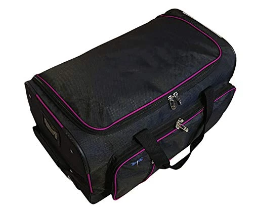 - Large exterior pocket, pull-out trolley handle, smooth ball-bearing wheels