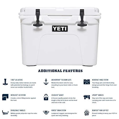 - All Tundra coolers feature T-Rex Lid Latches constructed of heavy-duty rubber so you’ll never see another busted latch and has patented keeper technology