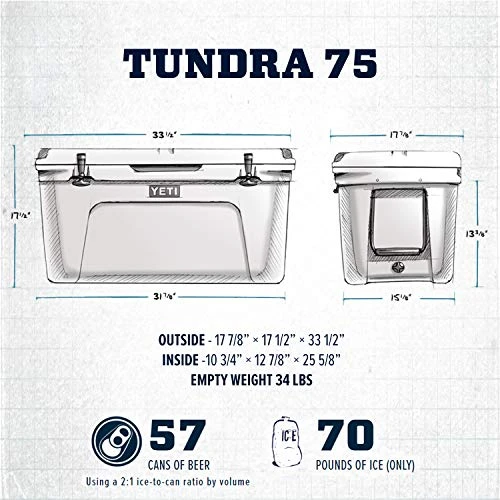 - The YETI Tundra 75 is the outdoor cooler that’s ideal for keeping your family and friends fed and hydrated, able to hold up to 50 cans with recommended 2:1 ice-to-contents ratio, briskets, or fishing limits easily